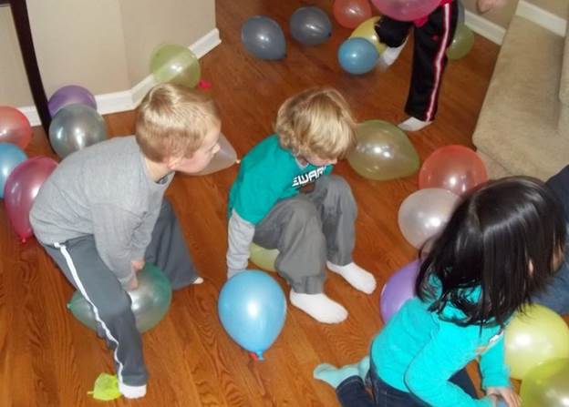 Gonflez des ballons et attachez-en un à la taille ou à la cheville de chaque joueur. Le but : éclater les ballons des autres en s’asseyant dessus ou en les écrasant — sans les mains !